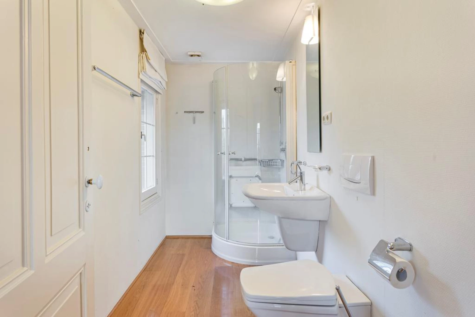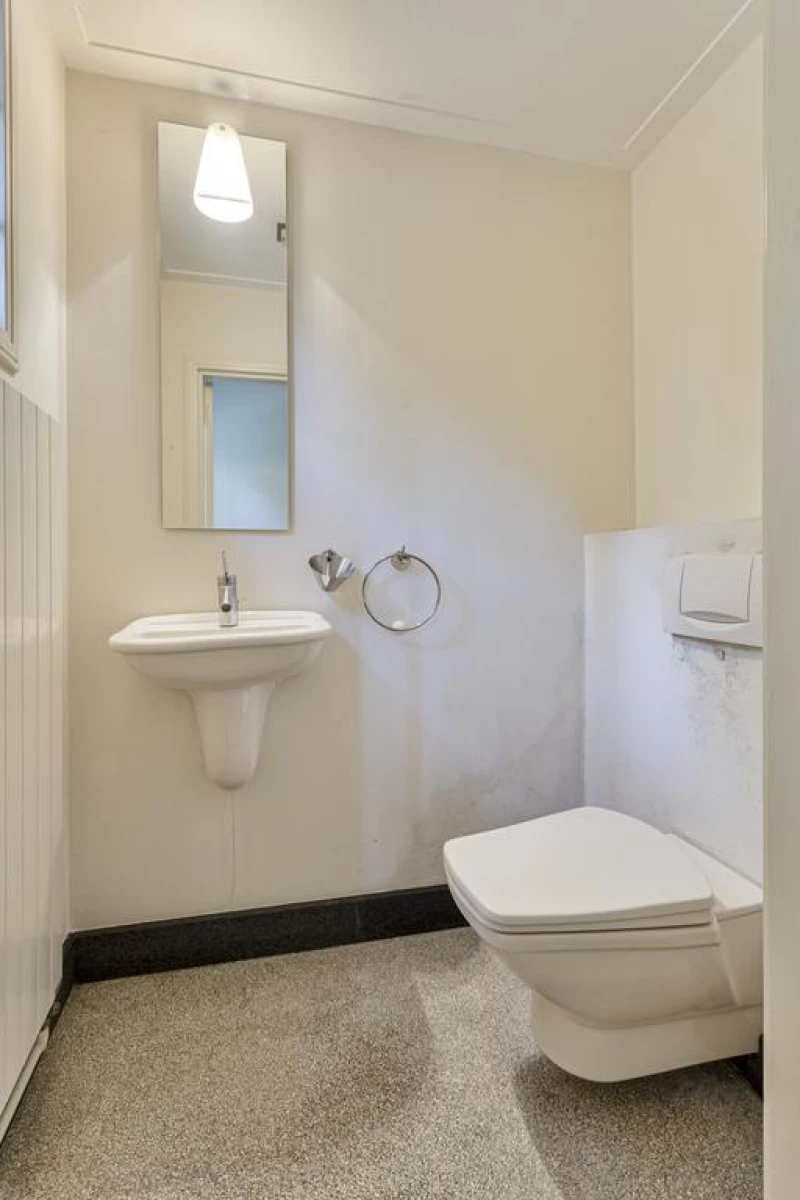 Er is nog een 2e badkamer aanwezig met o.a. een douchecabine, wandcloset en een wastafel.