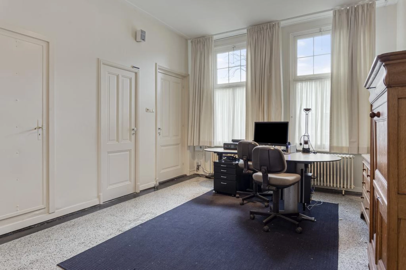* Begane grond met gerestaureerde terrazzo- en parketvloeren;