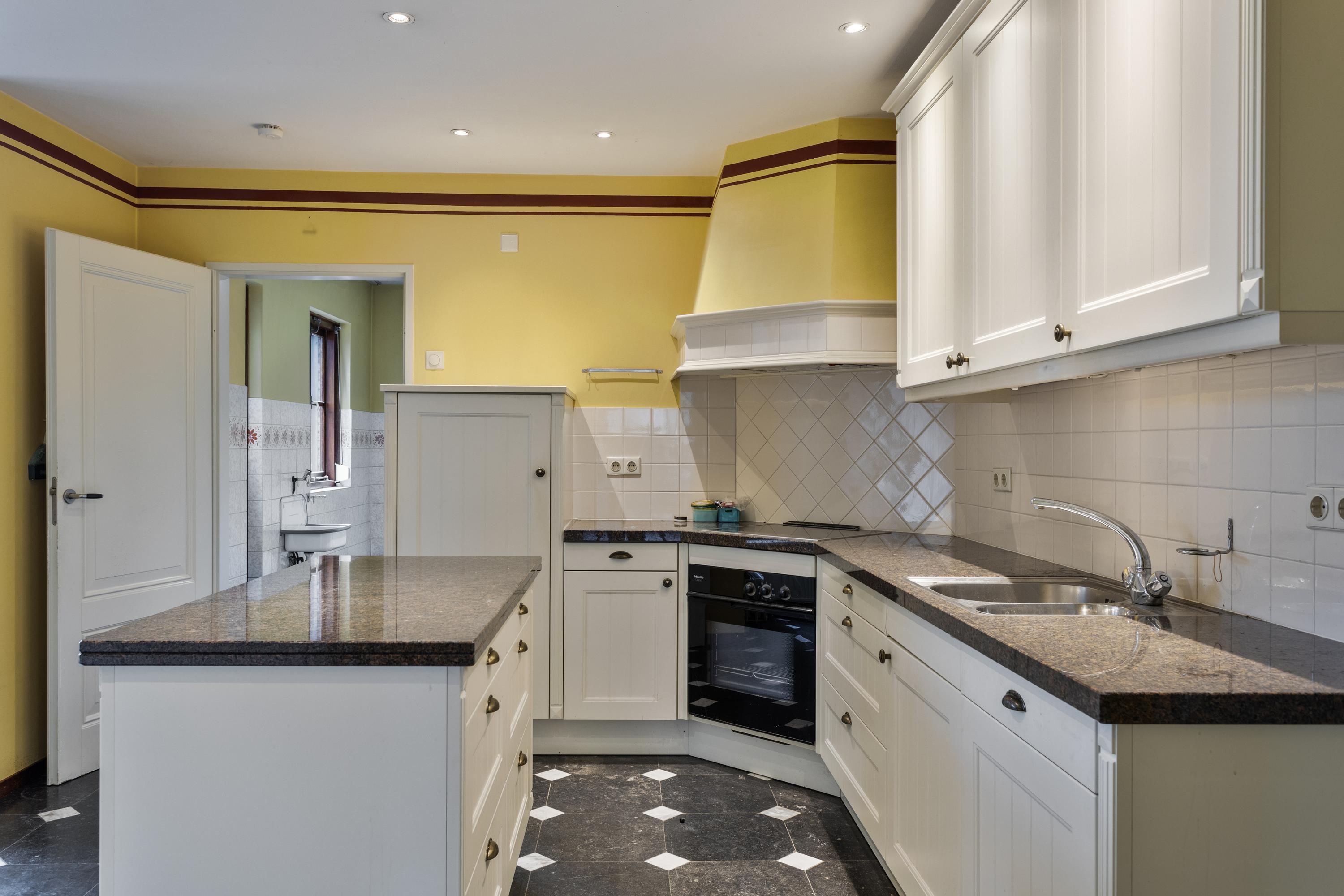 De afgesloten keuken is praktisch ingericht. Het kookeiland biedt volop werkruimte en is ideaal voor kookliefhebbers. De keuken is voorzien van een inductiekookplaat, koelkast, oven en een afzuigkap. Er is voldoende kastruimte en een gezellige plek voor een kleine eettafel. De landelijke stijl met een granieten blad en halfhoge betegeling zorgt voor een warme uitstraling.