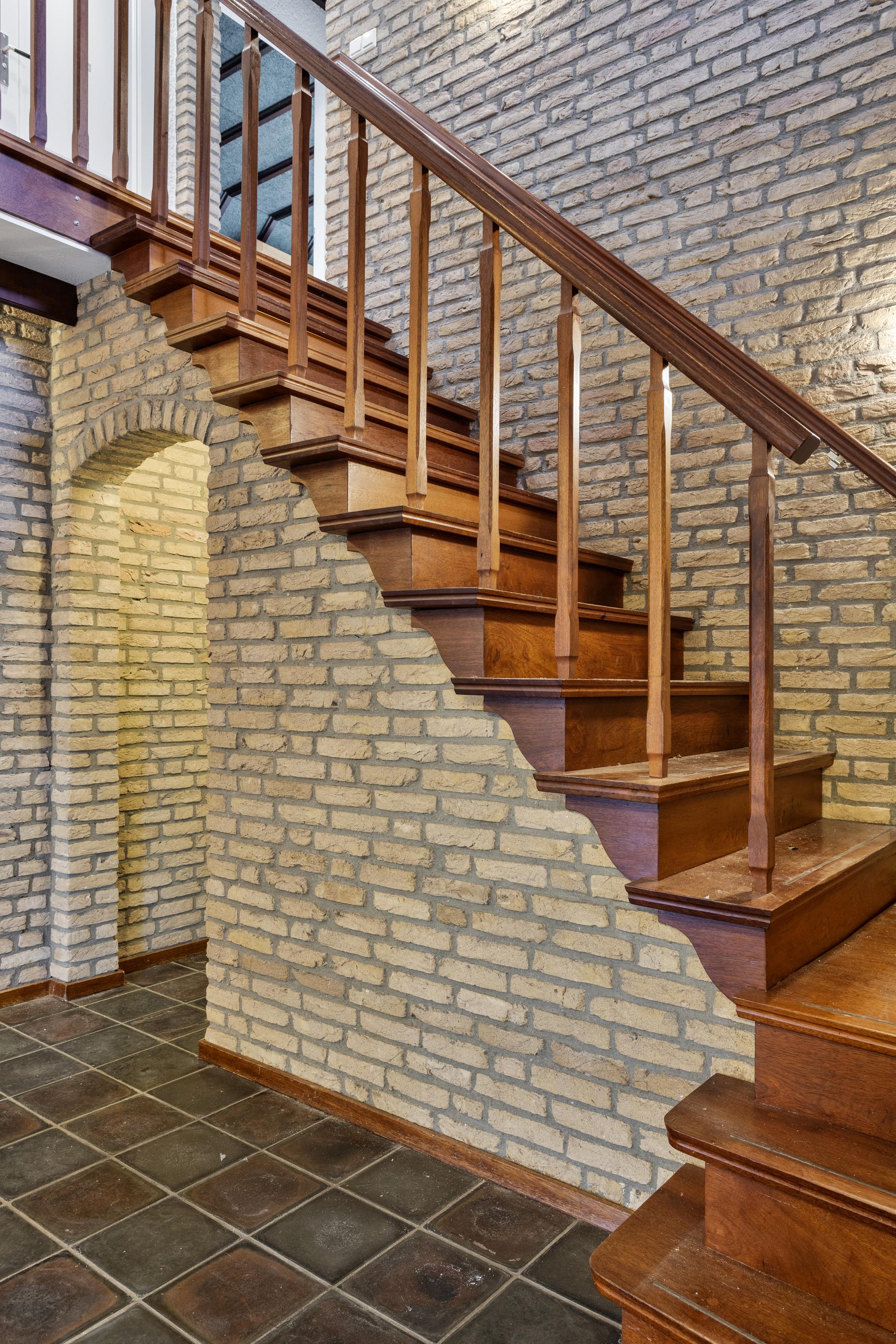 Bij binnenkomst wordt u direct verrast door de indrukwekkende hal. De ruime entree met hoog plafond geeft toegang tot de trap naar de eerste verdieping, de zitkamer, living met eetkamer, keuken, toilet, garage en bijkeuken. Dankzij de open verbindingen voelt de woning ruim en uitnodigend aan. Op de vloer ligt een stijlvolle tegelvloer en de muren zijn afgewerkt met schoonmetselwerk. De imposante entree geeft een goede eerste indruk van de ruimte en mogelijkheden die deze woning biedt.