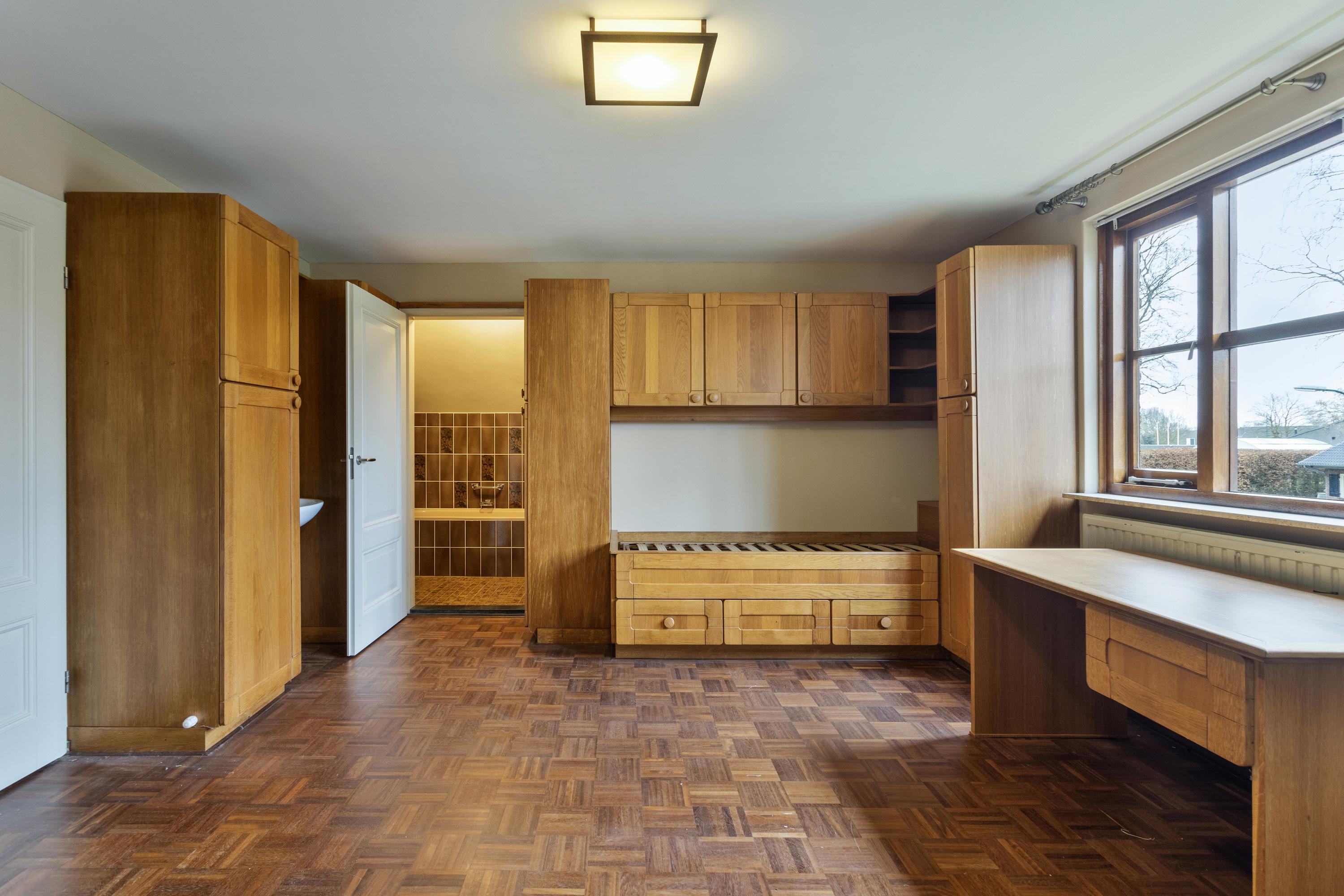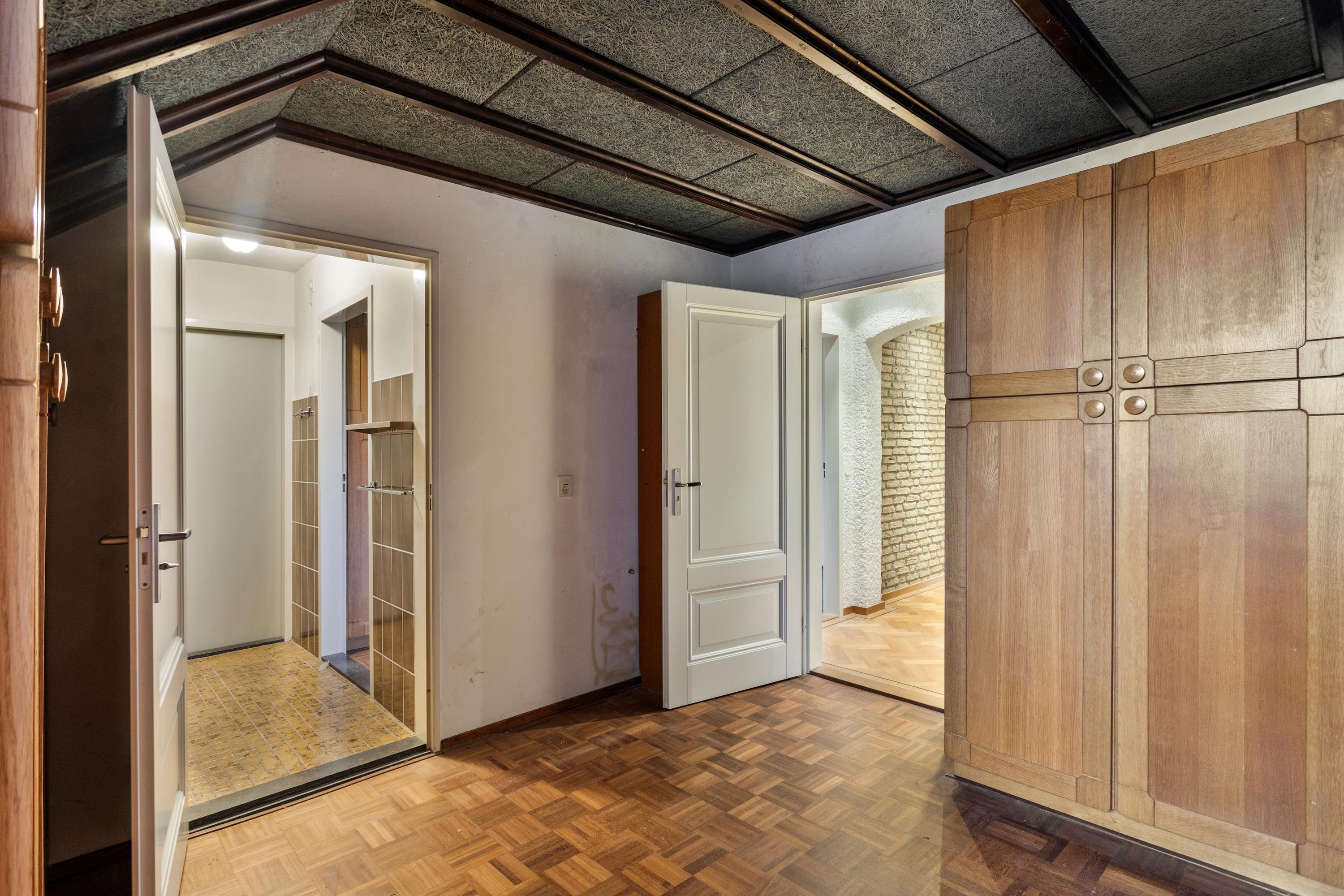 De royale overloop leidt naar vijf ruime slaapkamers, drie badkamers, een apart toilet en de vide boven de living. Ook vindt u hier de vlizotrap naar de zolder. De parketvloer met zwarte bies zorgt voor een stijlvolle uitstraling.
