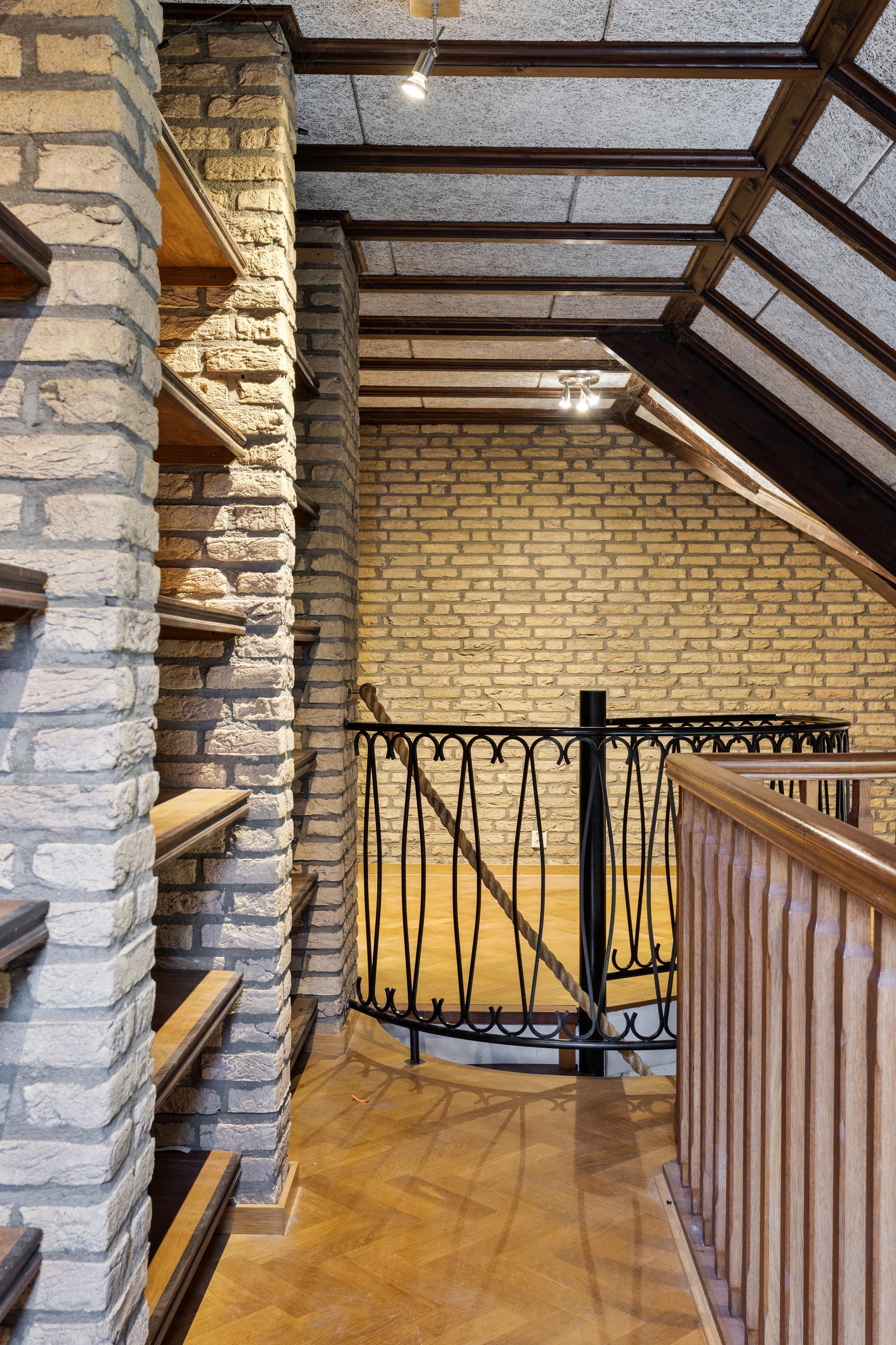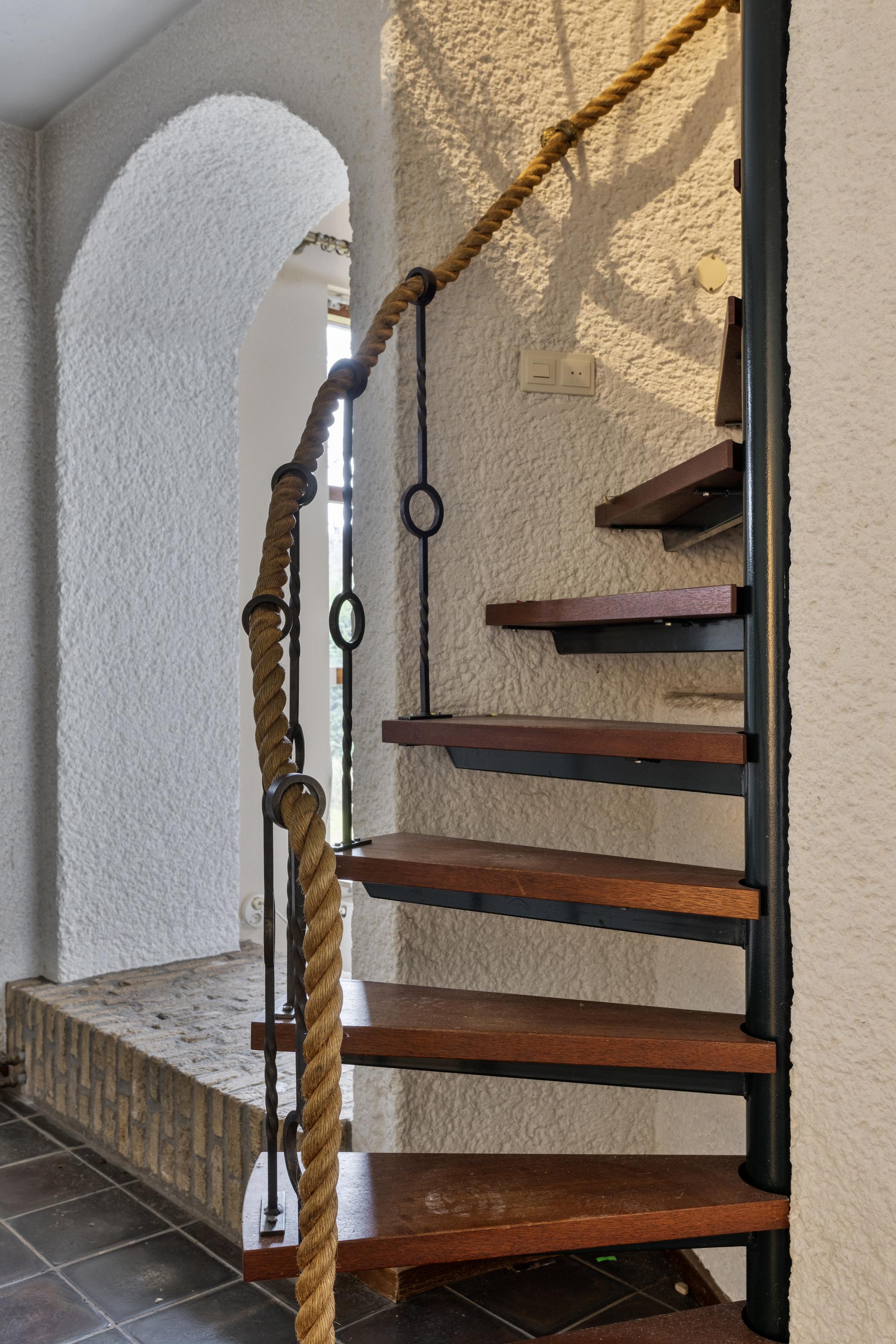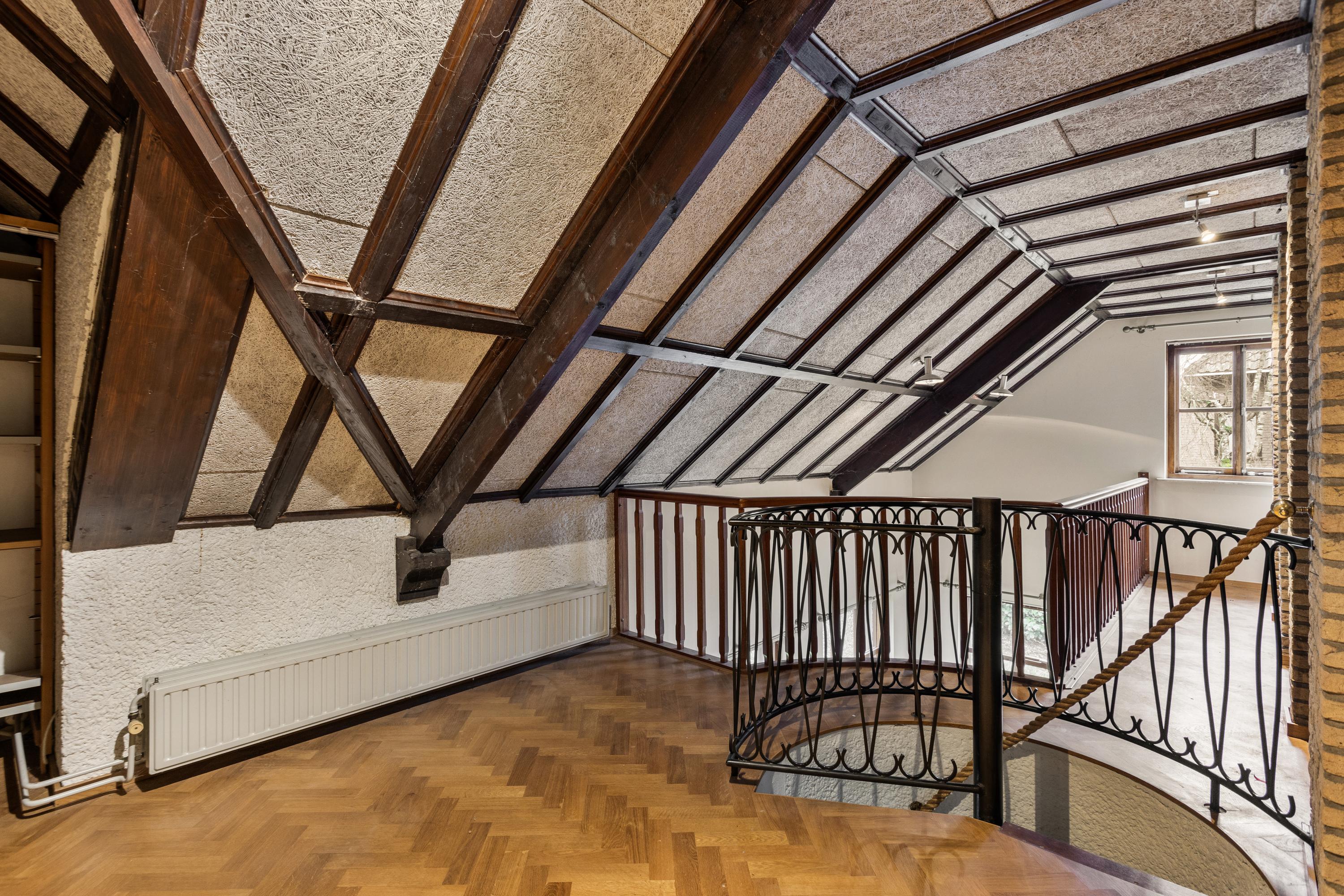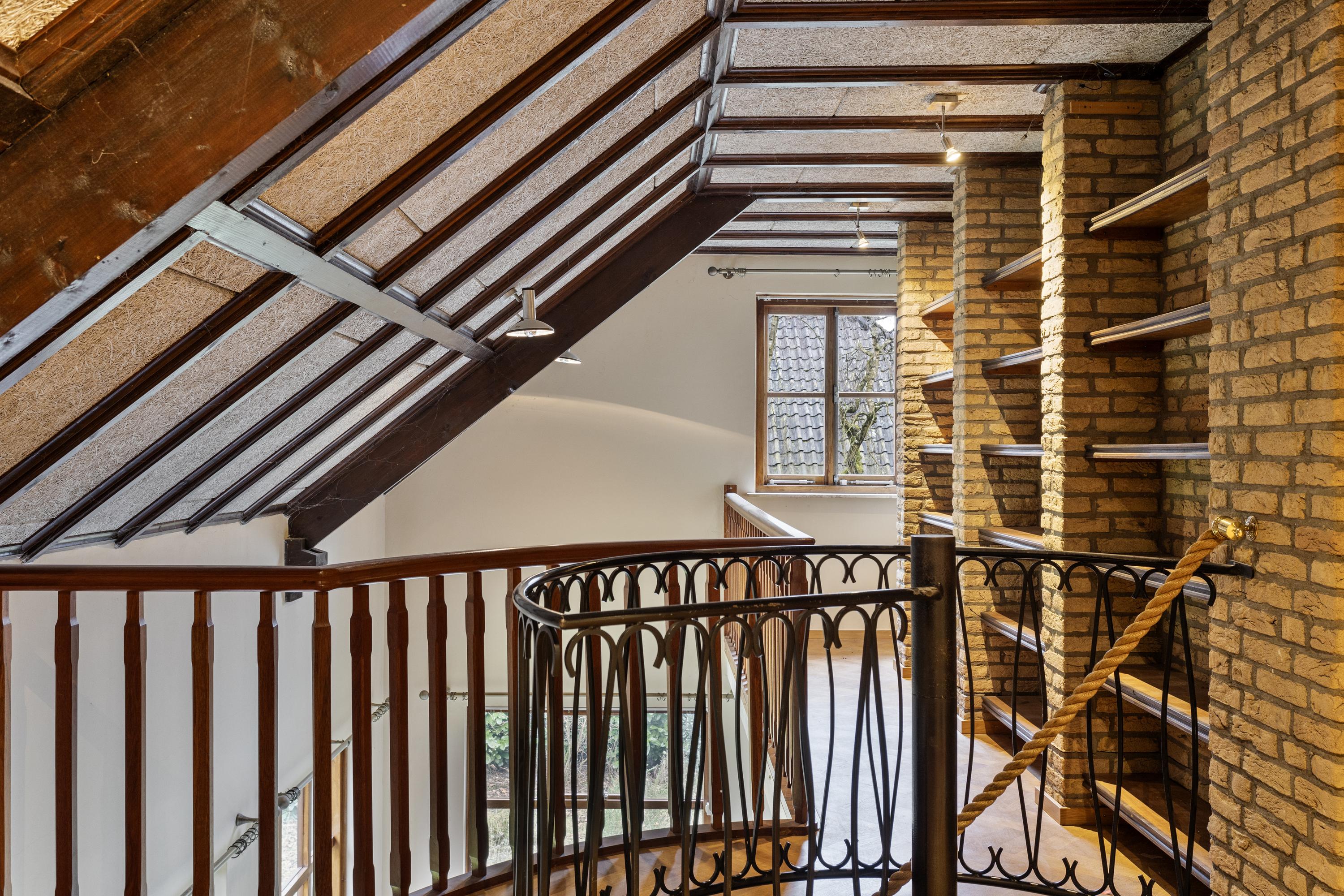 Vanaf de vide heeft u een prachtig zicht op de woonkamer. De ruimte is voorzien van inbouwkasten, ideaal voor het opbergen van boeken of decoratieve items. Een elegante spiraaltrap biedt toegang tot de benedenverdieping.
